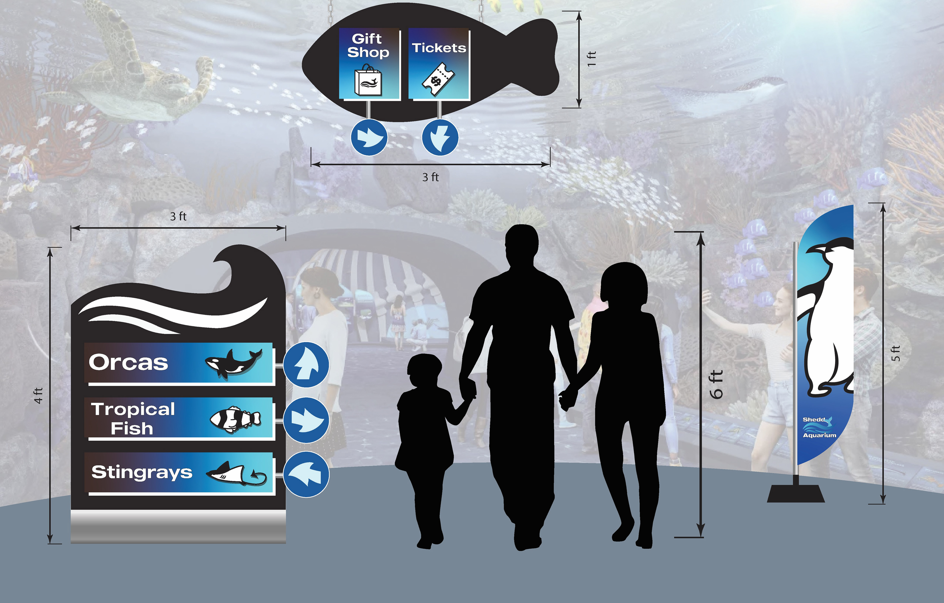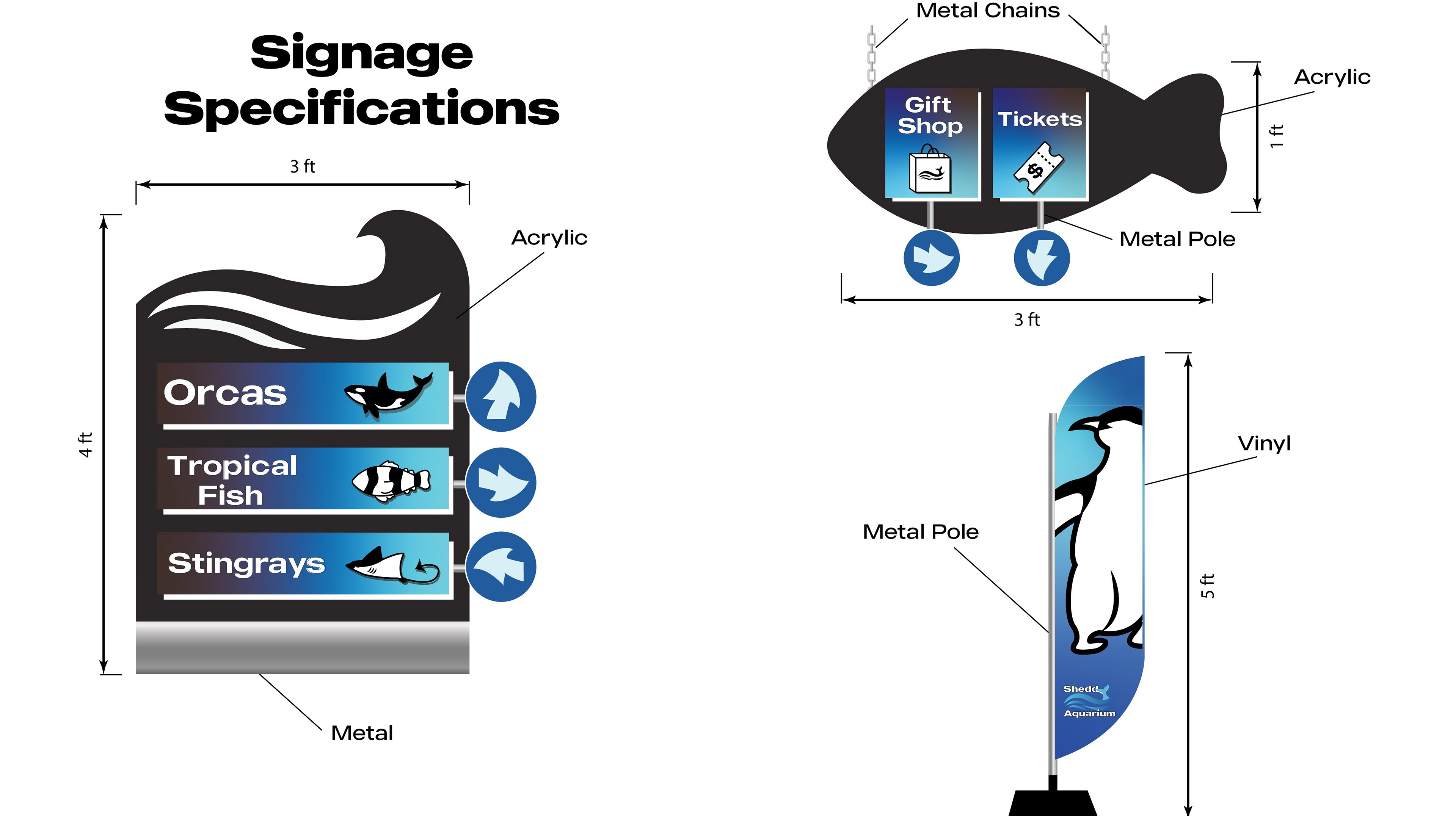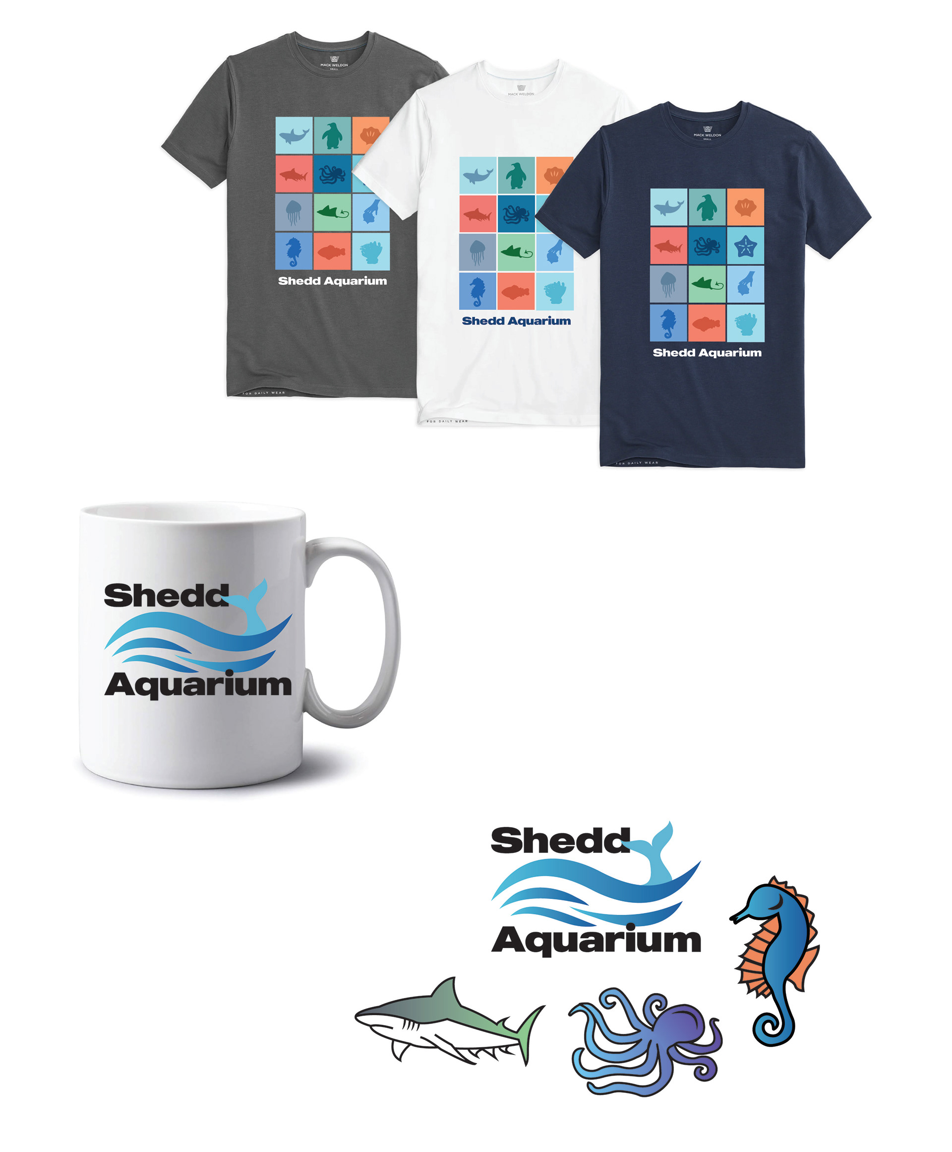 For my branding class in April 2024, I created a brand redesign concept for Shedd Aquarium. I created new logos, a color palette, icons, apparel, and signage that can be used for an upcoming event.